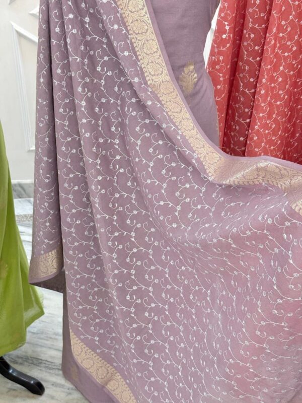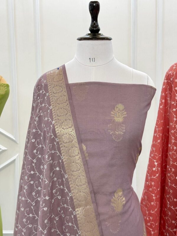 Priced at an accessible ₹1225, this Banarasi suit is a testament to timeless craftsmanship. It is the perfect choice for festive occasions, cultural celebrations, or whenever you desire to make a sophisticated style statement.